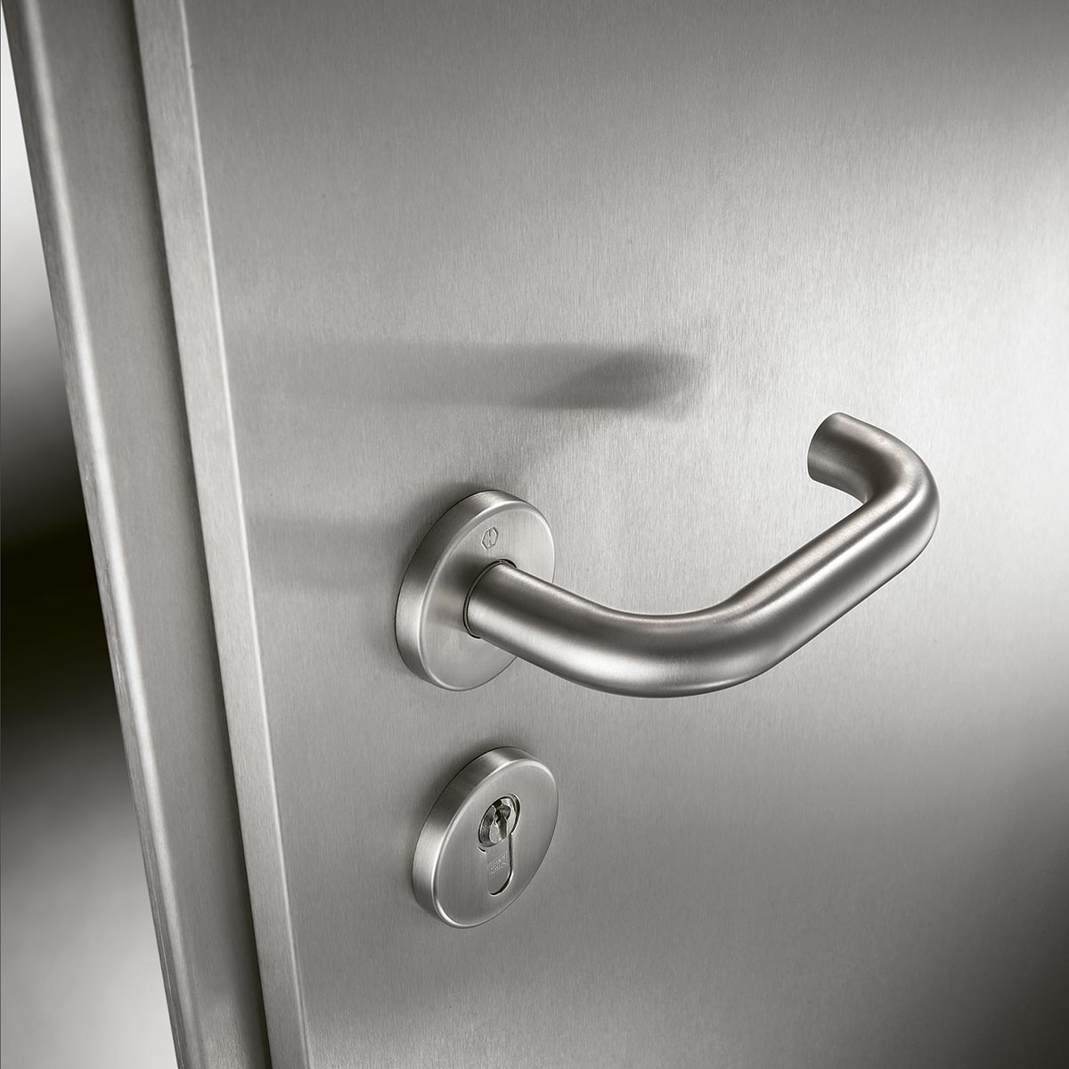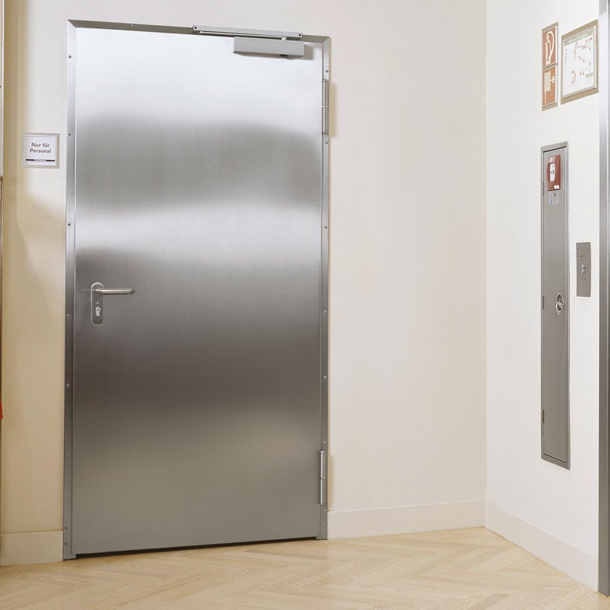 Immer dort, wo strenge Hygienevorschriften herrschen oder Türen absolut korrosionsbeständig sein müssen, ist Edelstahl das Material der Wahl. Die makellos glänzenden Oberflächen unserer Edelstahltüren mit den passenden Drückergarnituren machen darüber hinaus optisch einen hervorragenden Eindruck.