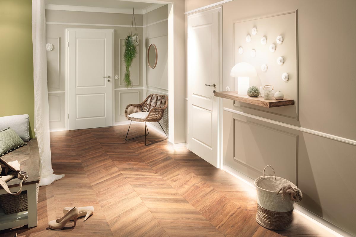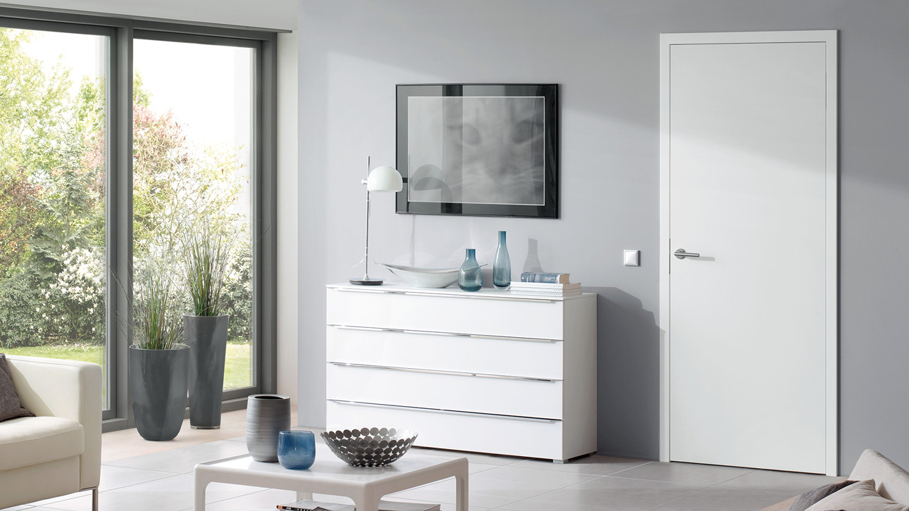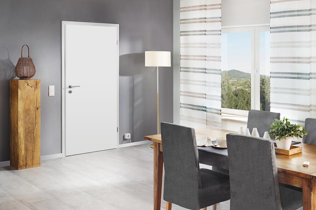 Das Türblatt in stumpfer oder gefälzter Ausführung, kombiniert mit Ihrer Wunschfarbe oder Ihrem Wunschdekor, schafft eine wohnliche Atmosphäre, die zum Entspannen einlädt.
